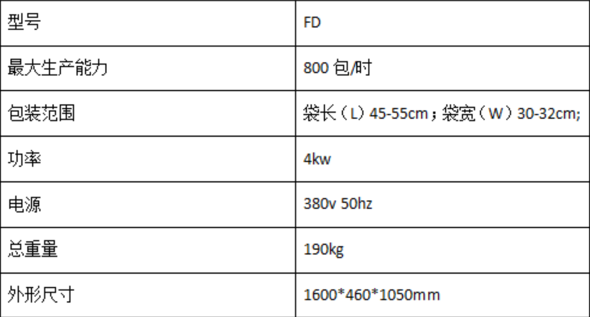 适用于可料袋扁宽30cm-32cm,袋长40cm-50cm的自动装袋。