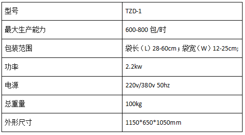 1、采用电磁离合托袋板结构,机械刹车系统,机械调整装袋长短和虚实,操作简易便捷。