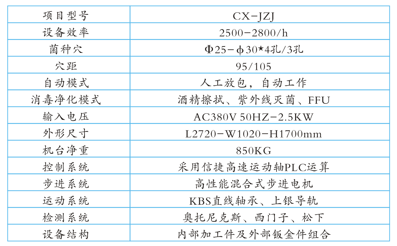 1、PLC高效自动化电脑控制程序,气动式动作运行,自动消毒、打孔、注种、推种、整平、出袋,采用全程模拟手工完成接种作业。